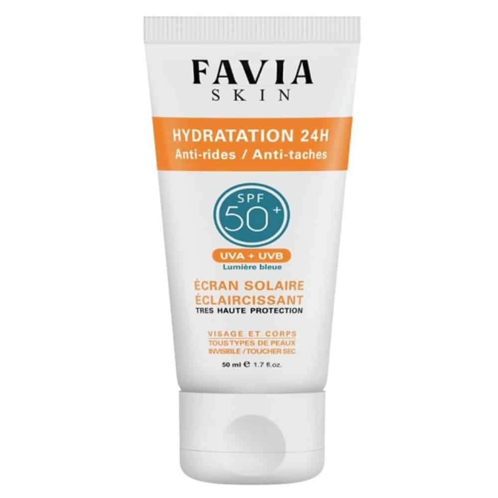 FAVIA – Skin Écran Solaire Éclaircissant Anti-rides Et Anti-taches Hydratation 24h SPF50 – 50ml Maroc au meilleur prix | Parachezvous.ma