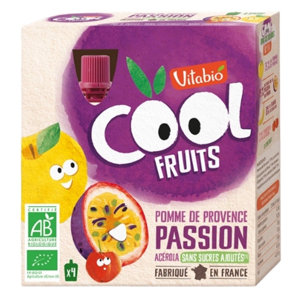 Commandez VITABIO – Cool Fruits Pomme De Provence, Passion Et Acérola Bio – 4x – 90g à seulement 50 د.م. chez Parachezvous.ma. Livraison rapide partout au Maroc. Produits 100% original.